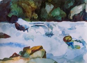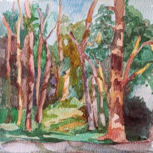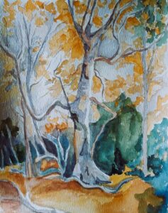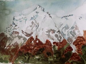 Los pájaros han tornado a sus nidos en bandadas.Perezosa, la última nube se aleja.La montaña es mi única compañera.Ni al uno ni al otro nos cansa mirarnos.